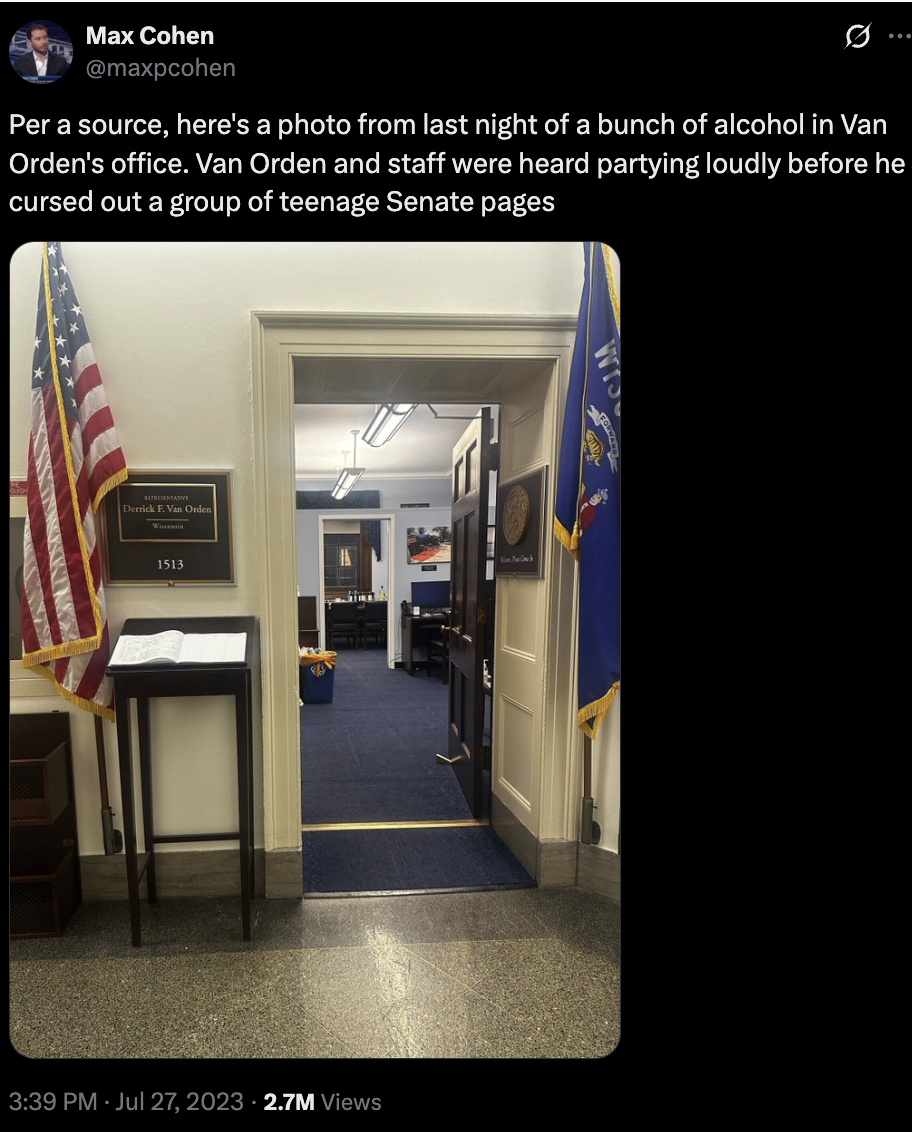 But this is what happens when a congressman stops representing his district and starts cosplaying as a full-time Trump administration spokesperson. Van Orden is continuing to ignore his constituents, presumably stalking the streets of DC finding any way to do Trump’s bidding.